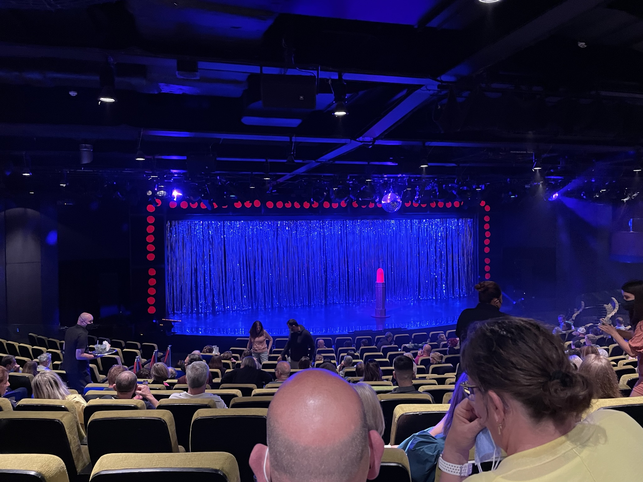 Für Erwachsene gibt es einen großen Spa, die Preise dort haben es aber, typisch angelsächsischer Markt, in sich. Für eine Stunde Therapie legt man mindestens 149 US-Dollar hin zzgl. Trinkgeld hin, nach oben kennt der Preis fast kein Limit. Das Fitnessstudio hält locker mit jeder Anlage an Land mit, eine verkauforientierte Kunstmaklerin und eine kleine Shoppingwelt sind ebenfalls an Bord zu finden. Hauptattraktion ist zweifelsohne das Theater, welches sich im Bug über zwei Decks erstreckt und im Gegensatz zu AIDA und MeinSchiff echtes Entertainment bietet. Echt in dem Sinne, als dass die Shows meistens Spin-Offs von erfolgreichen Broadway Produktionen sind, das Team aus mehr als 20 Künstlern besteht und die Shows nicht in 45 Minuten runtergebetet werden. Hier sind die amerikanischen Anbieter der deutschen Konkurrenz Lichtjahre weit enteilt. Die Bars sind vielfältig und im gesamten Schiff zu finden, ein besonderes Highlight ist die Eisbar, die in der Galerie gezeigten Bekleidungsvorschläge sollten dort drinnen unbedingt befolgt werden.